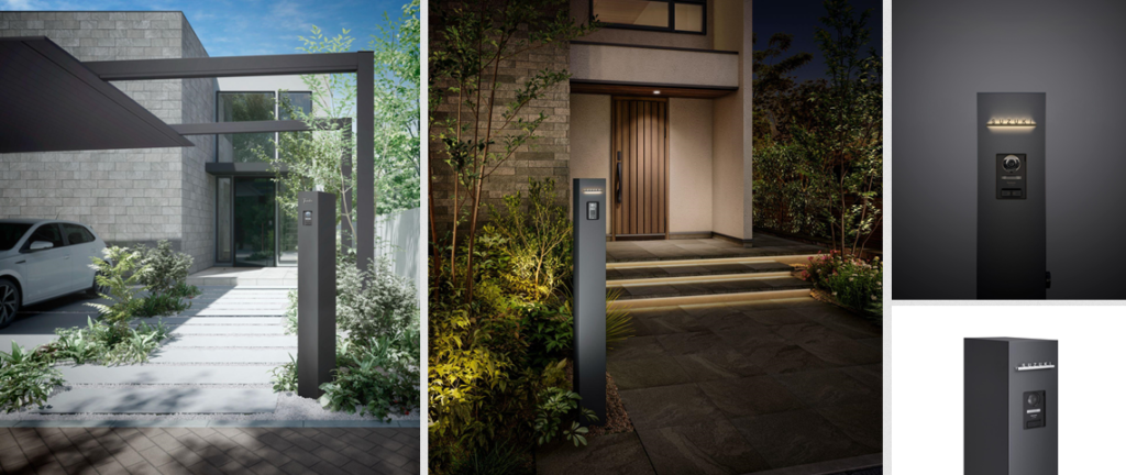 宅配ボックスを備えながら、ミニマルデザ インにこだわった「機能門柱FT」に新色 と照明付きの表札を追加